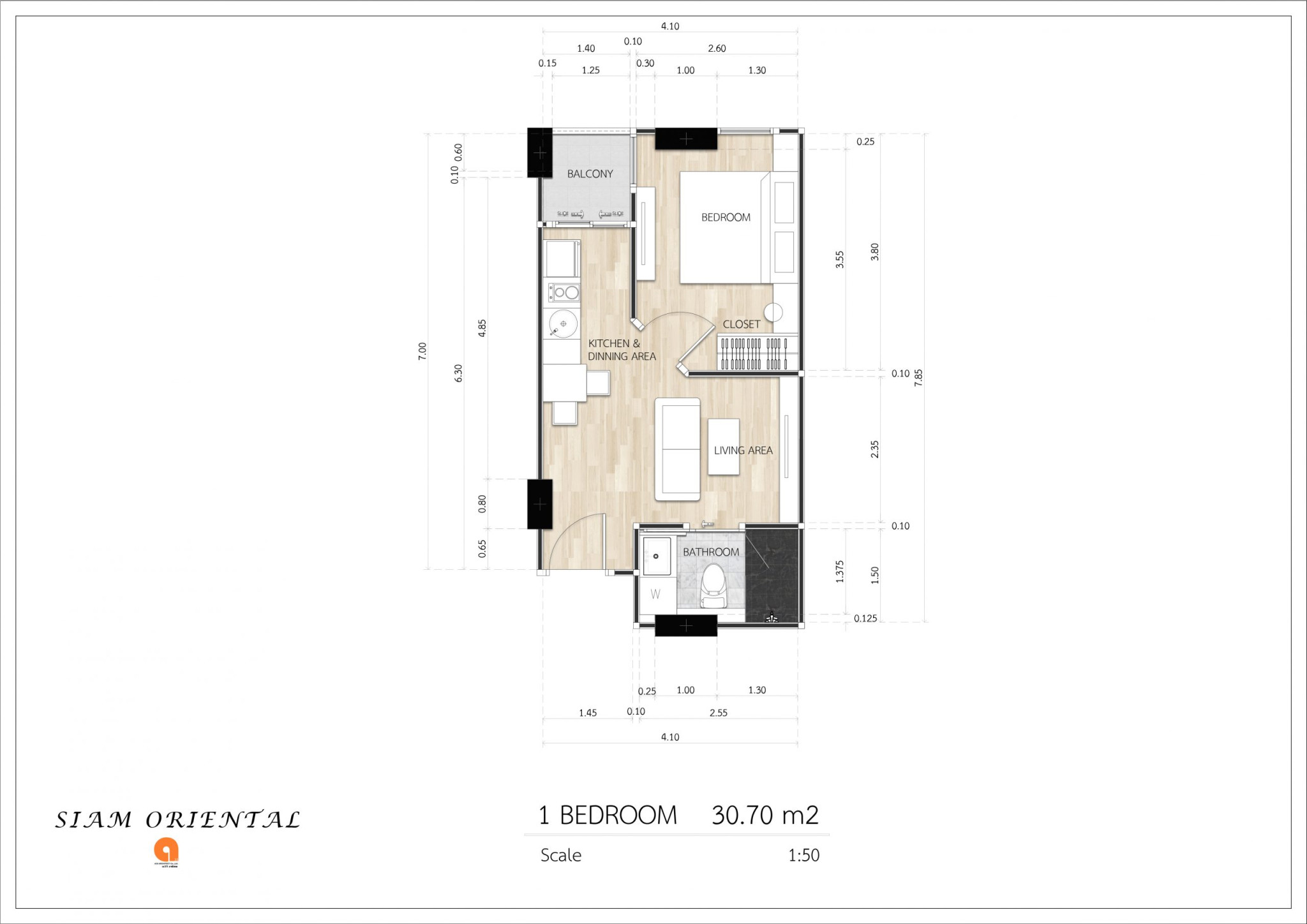 Architecturally, Siam Oriental Oasis follows a low-rise format. One building. Eight floors. Around 180-190 units in total. Not massive. And that scale changes how the place feels. Less transient. More… settled. You don’t walk in and feel like you’re passing through a hotel.