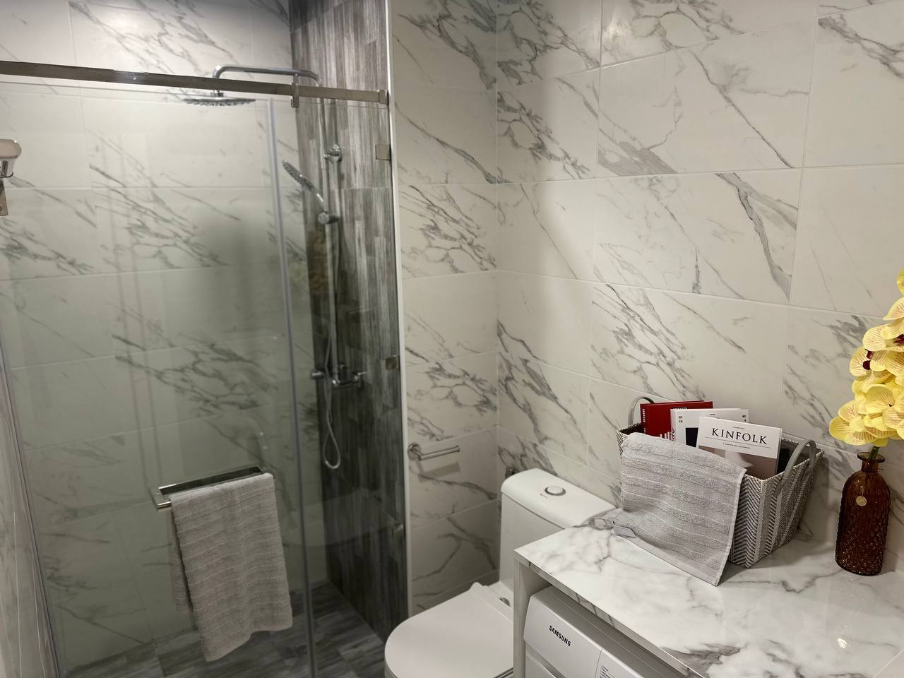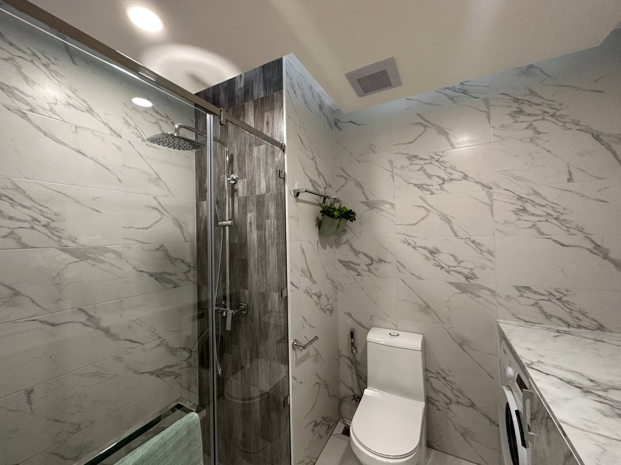 Elegant interiors feature high-quality ceramic tiles in bathrooms and kitchens, complemented by modern ceiling designs. An integrated system of built-in local lighting and carefully separated light zones creates a warm, уютная and balanced living atmosphere.