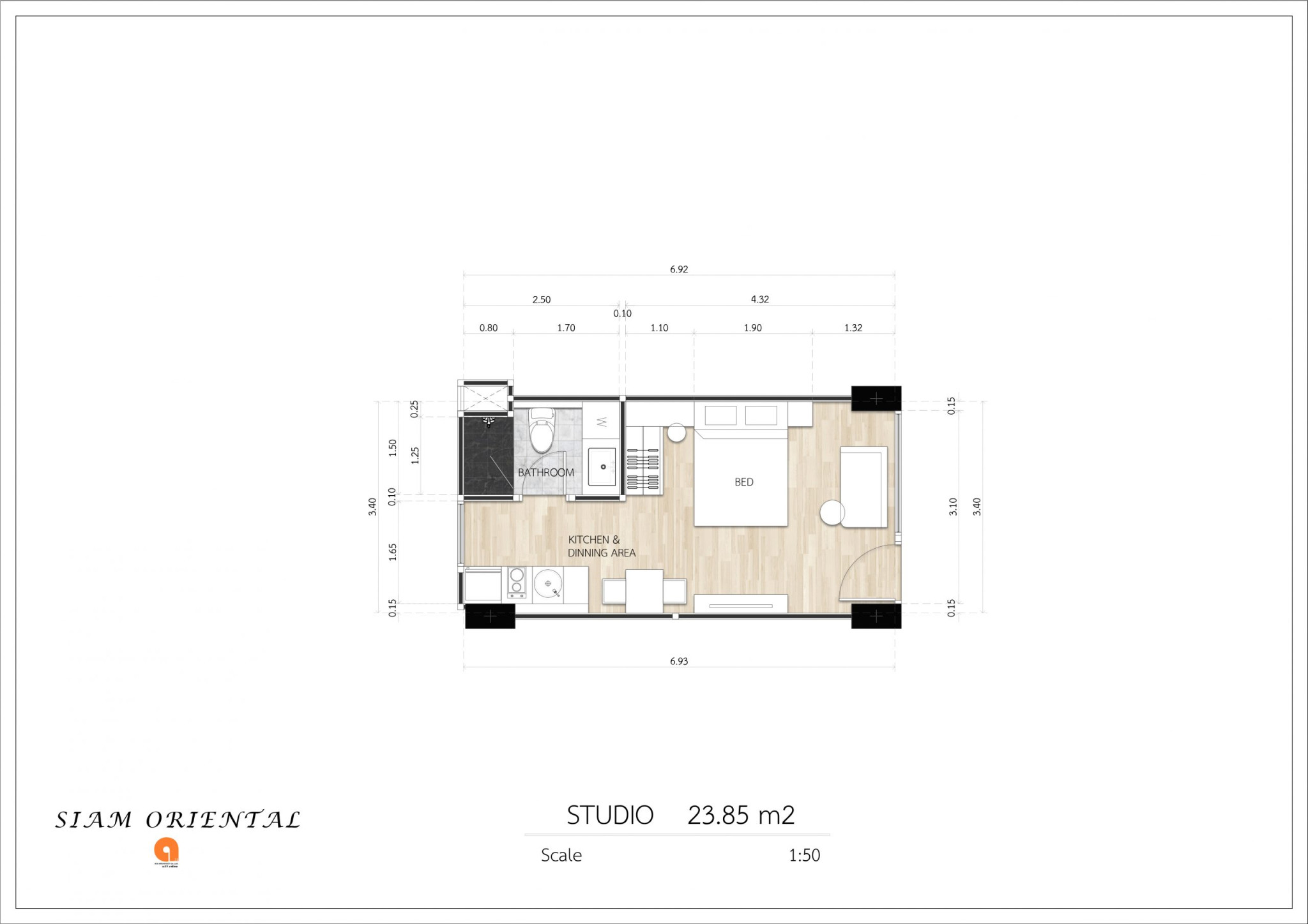 Inside, layouts are compact but practical. Studios start from about 23 square meters. One-bedroom units go up to around 40. Enough for living. Enough for rental. No wasted space. European-style kitchens, built-in furniture, air conditioning - standard setup, but done properly. It’s not about impressing. It’s about working day to day.